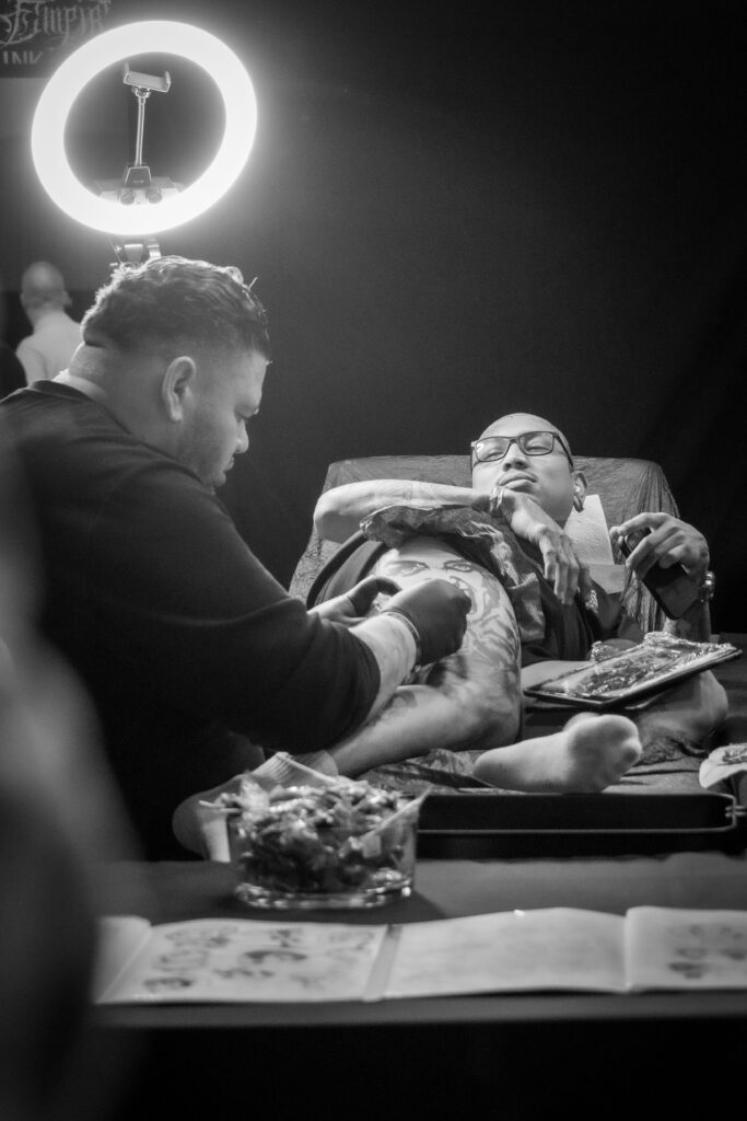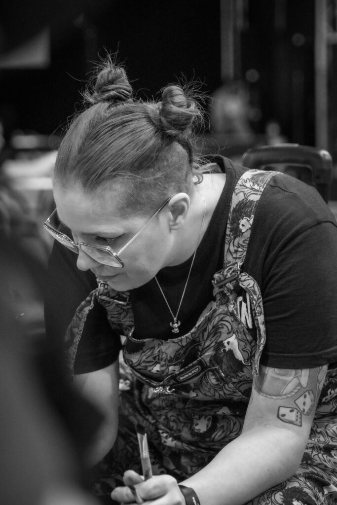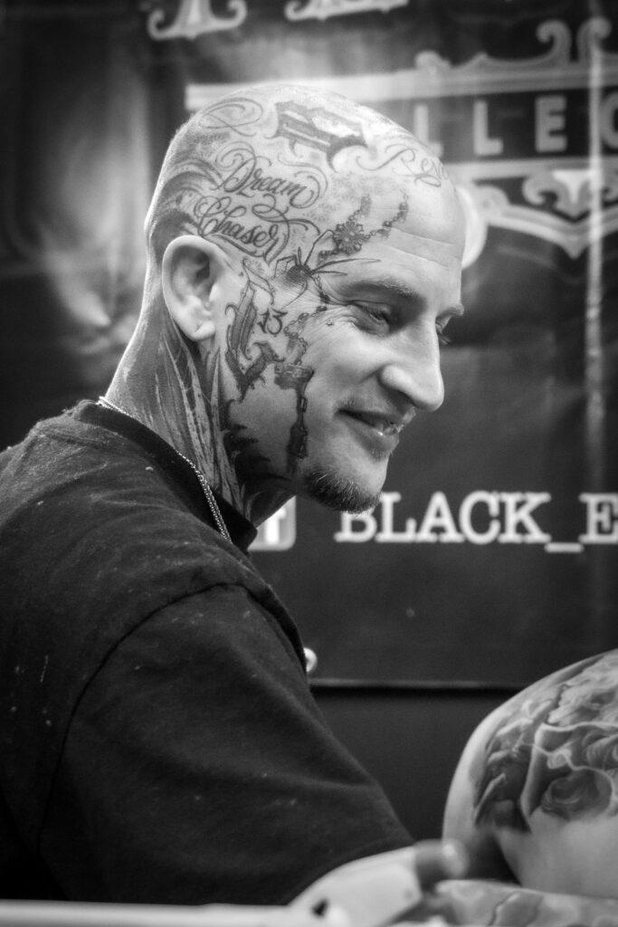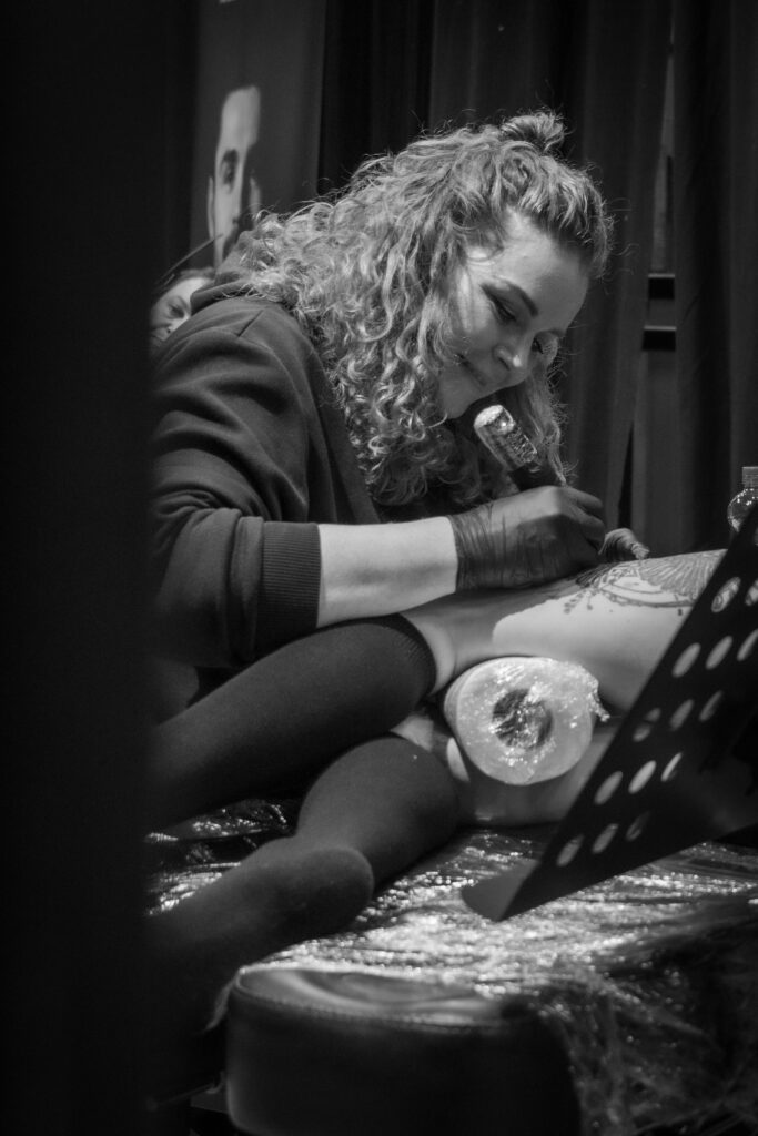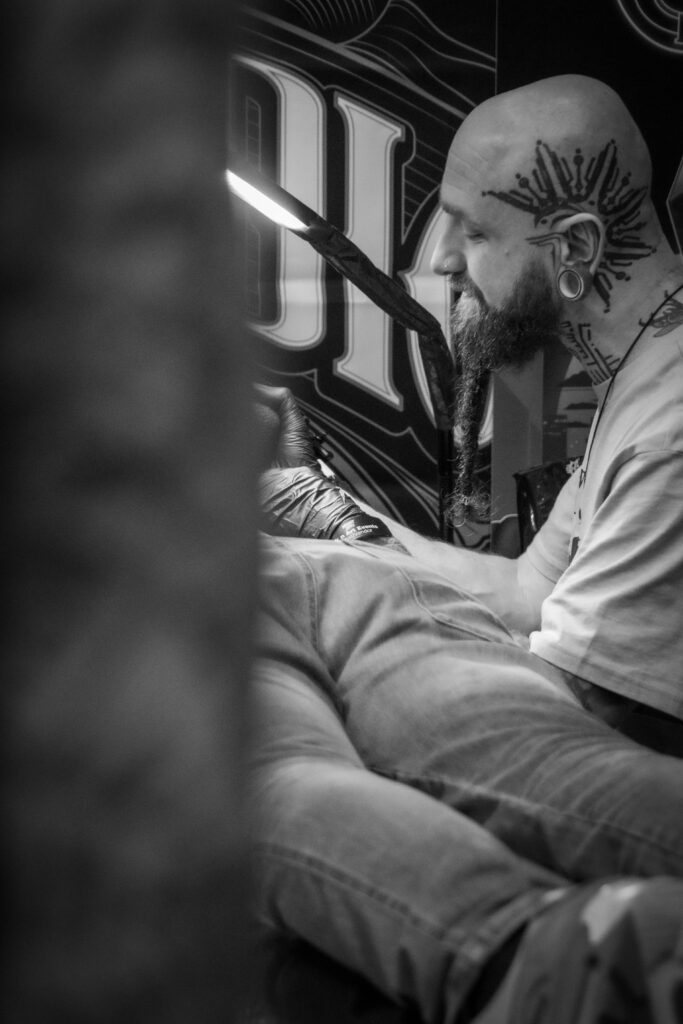 Het werk van Patryk is een ode aan het ambacht: puur, direct en eerlijk. De inkt wordt traag onder de huid gebracht, met een zichtbare, tastbare intensiteit die niet te imiteren is.